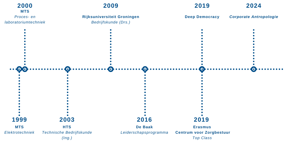 De afgelopen jaren heb ik binnen het diverse managementfuncties bekleed, met als rode draad analyseren, met lef verbinden en (door)ontwikkelen van mens en organisatie.